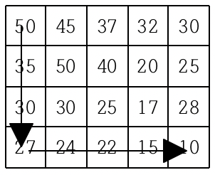 여행을 떠난 세준이는 지도를 하나 구하였다. 이 지도는 아래 그림과 같이 직사각형 모양이며 여러 칸으로 나뉘어져 있다. 한 칸은 한 지점을 나타내는데 각 칸에는 그 지점의 높이가 쓰여 있으