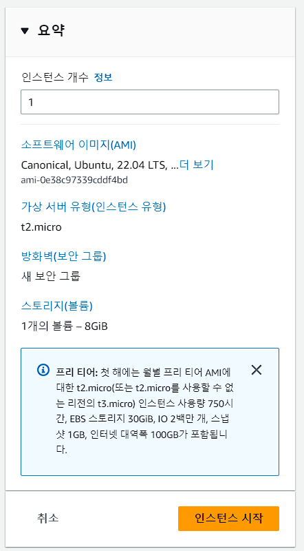 - 인스턴스 유형 선택 (예: CPU, 메모리, 스토리지 등의 사양에 따라 다른 유형 선택 가능)