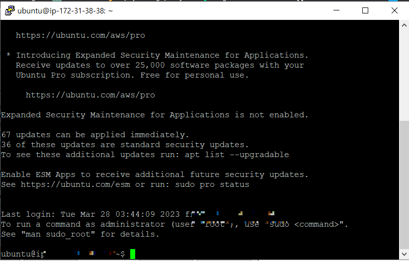 이렇게 해서 SSH를 사용해서 AWS EC2 인스턴스에 로그인해 보았다.
