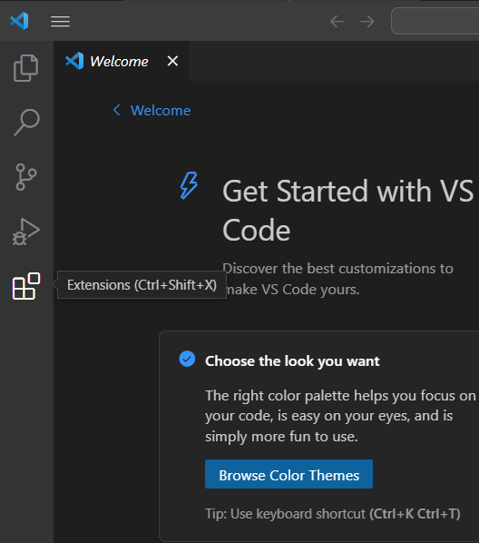 - 다운로드한 VSCode에 들어간 다음 'Extensions(확장)' 탭을 선택한다.