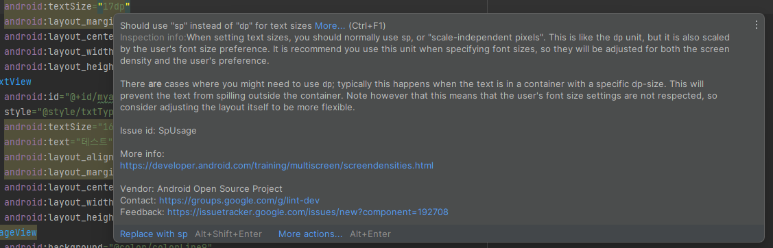 sp는 Scale-Independent Pixel의 약자입니다. 기본적으로 dp 단위와 같지만 사용자의 글꼴 크기 환경설정에 의해 확장되기도 합니다.
