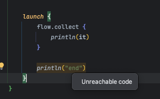예시에서는 Flow를 만들고, 이를 collect한 다음 "end"를 출력하게 만들었습니다.