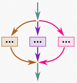 위 그림에서 볼 수 있듯이, 위에서 들어오는 화살표는 하나이고 아래로 나가는 화살표도 하나뿐입니다. 이러한 구조를 이루기 위해서는 우리는 모든 동시성 작업이 종료되는 시점을 명확하게 제어해야 합니다.