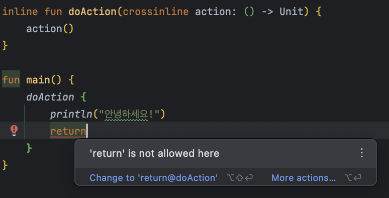 아규먼트로 인라인 함수를 받지만, 비지역적 리턴을 하는 함수는 받을 수 없게 만듭니다.